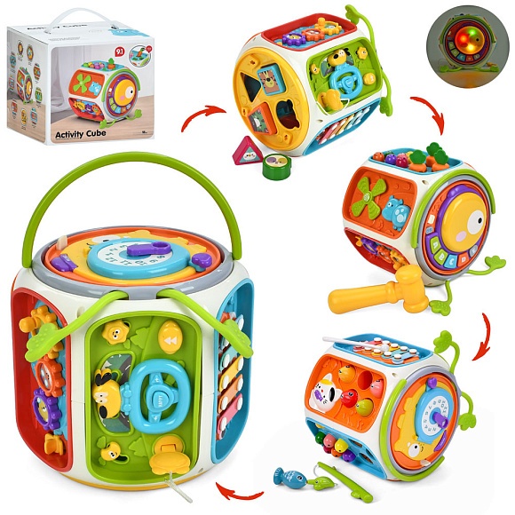 Гра 6216 9в1,багатогранник,сортер,шестерні,піаніно,годинник,рух.дет.,ксилофон,муз.,світло,бат.,кор.