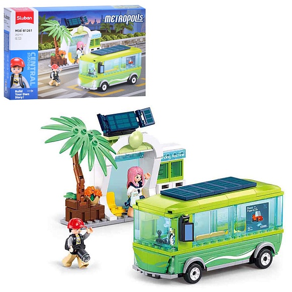 Опис Конструктор sluban m38-b1261 "metropolis": міська серія, автобус, зупинка, фігурки, 262 дет.