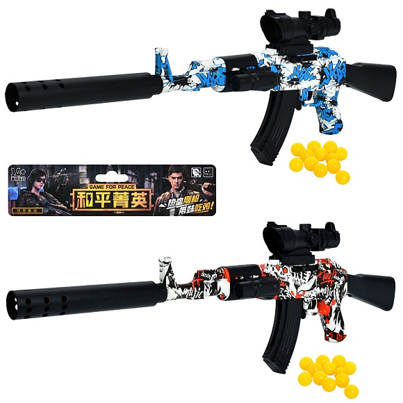 Опис Автомат 2025-5a 66см, пластикові кулі, прицел, лазер, 2 кольори, на бат(табл), у пакеті, 19-44-5см