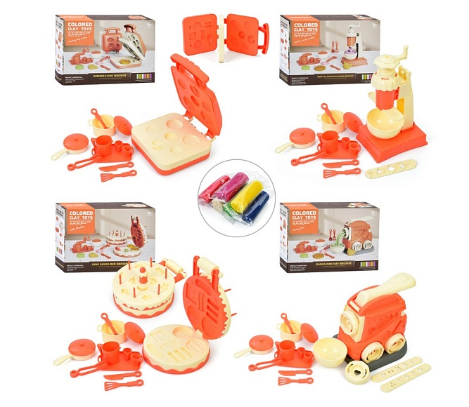 Опис Пластилін mk 5467 6 кольорів(стіках), апарат-прес, посуд, інструменти, 4 види, кор., 29-21-9,5 см.