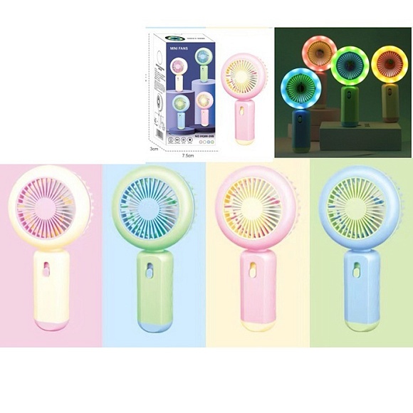 Вентилятор MK 5614 2 режими, акум., USB, 4 кольори, світло, кор., 8,5-16-4 см.