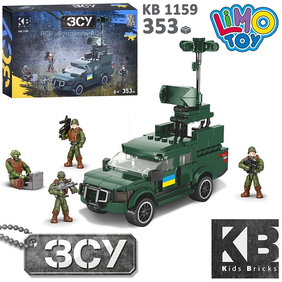 Опис Конструктор KB 1159 військовий, машина, РЕБ "Буковель-AD", 353 дет., кор., 24,5-16,5-5 см.
