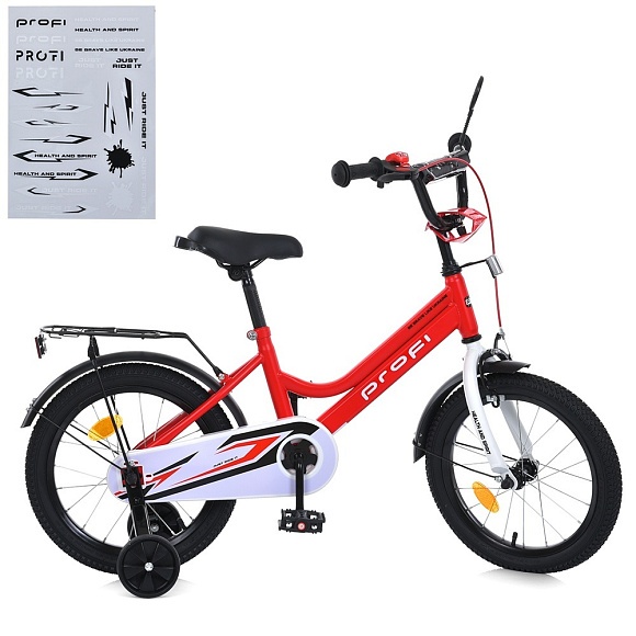 Опис Велосипед дитячий prof1 16д. mb 16031-1 neo,skd75,,дзвінок,ліхтар,багажник, дод.колеса,червоно-білий