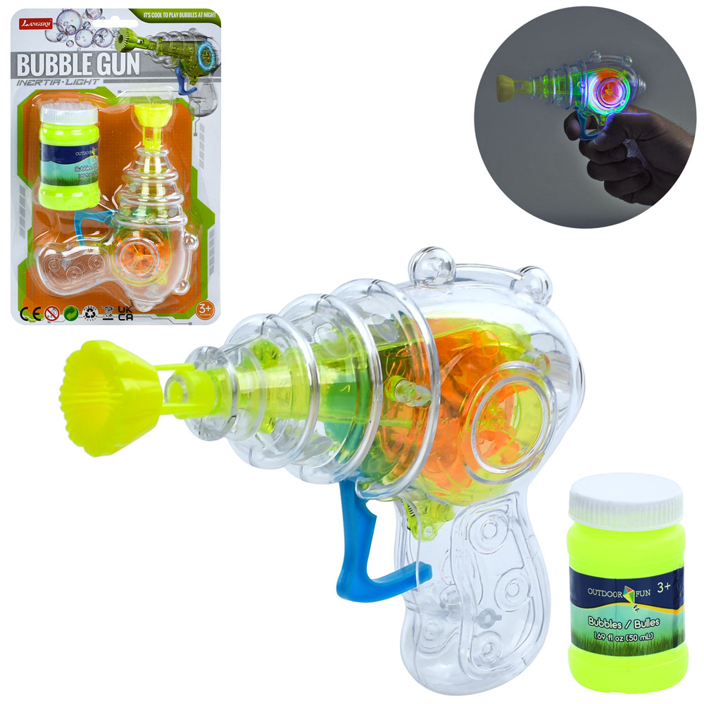 Мильні бульбашки LS7727-43 пістолет, механічний, запаска,світло, бат.(табл), лист, 15-23-5,5 см.
