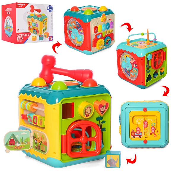 Опис Гра he0533 куб, стукалка, піаніно, лабіринт, шестерінки, муз., світло, бат., кор., 23-22-23 см.