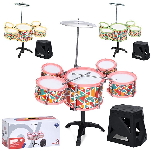 Опис Барабан 4012t 5шт, барабанна установка, стільчик, 3 кольори, кор., 47,5-21,5-23,5см
