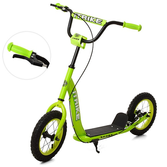 Самокат SR 2-043-1-GR підлітковий, 2 кол.-гума 12д, кермо, до 60 кг, підніжка, ручні гальма, зелений