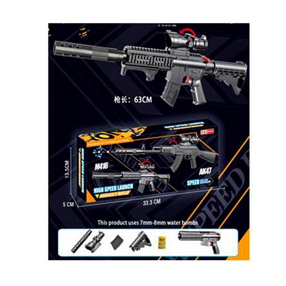 Опис Автомат 9909 стріляє водяними кулями, приціл, кор., 33,5-13,5-5 см.