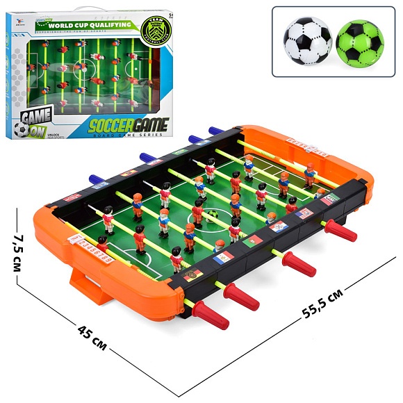 Опис Футбол 2415 на штангах, ігрове поле, м'ячі, присоски, наліпки,шкала веден.рахунку,кор.,56,5-45,5-9см