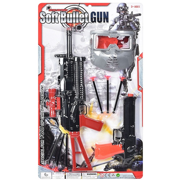 Набір зі зброєю 838-3 автомат, пістолет, маска, кулі присоски, лист, 58-32-5 см.