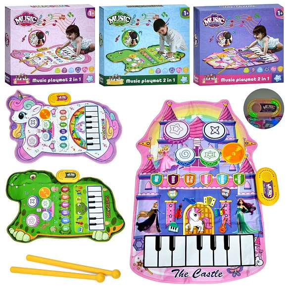 Килимок YYD-01-02-03 піаніно, барабани, палички 2 шт., 3 види, муз., світло, бат., кор., 29-26-5 см.