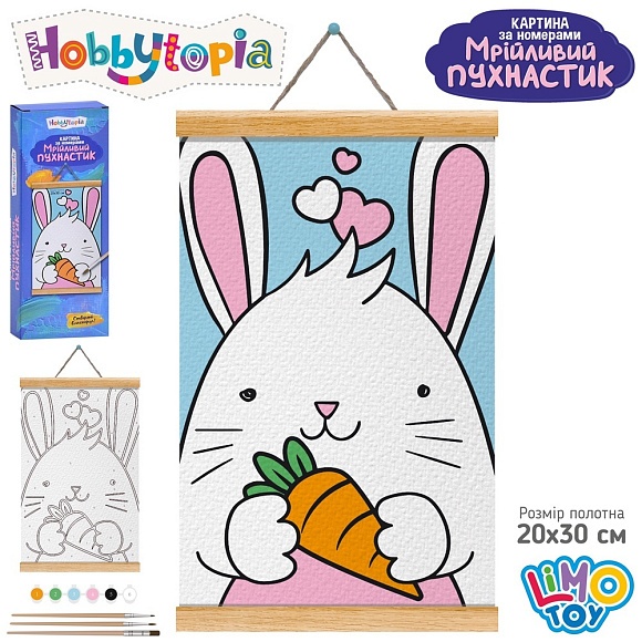 Опис Набір для творчості M 6101 UA картина за номерами,Мрійливий пухнастик,зайчик,20х30см,на підрамнику