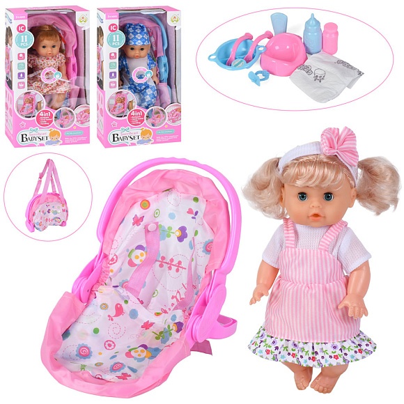 Опис Лялька wx013-3-6-8 29см, п'є-пісяє, звук, пляшечка, посуд, підгузок, люлька-переноска, бат.,кор.