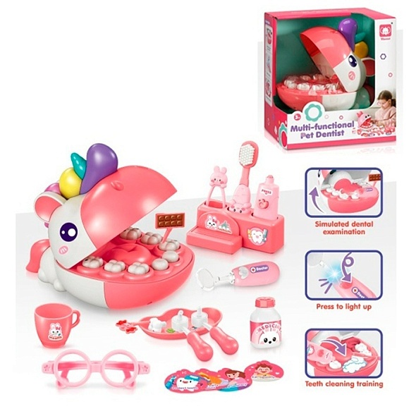 Набір лікаря 853 набір стоматолога, щелепи(єдиноріг), 20-13,5-в17см, окуляри, мед.інстр.бат.,кор.