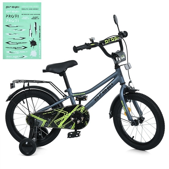 Опис Велосипед дитячий prof1 14д. mb 14014-1 prime,skd75,дзвін.,ліхтар,багажник,дод.кол.,графітовий.