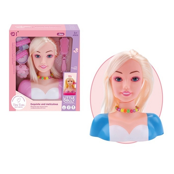 Опис Лялька голова для зачісок bm3319-1b гребінець, бігуді, заколка, 2 кольори, кор., 21-24-10 см.