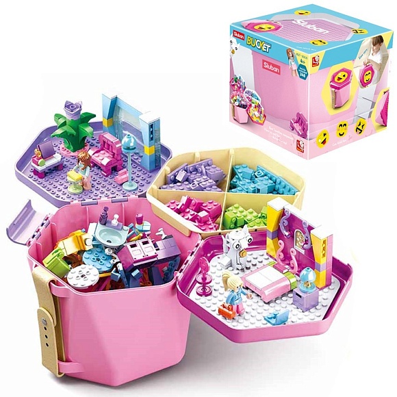 Конструктор SLUBAN M38-B0830 "Bucket": Набір деталей в рожевому боксі, 348 дет.