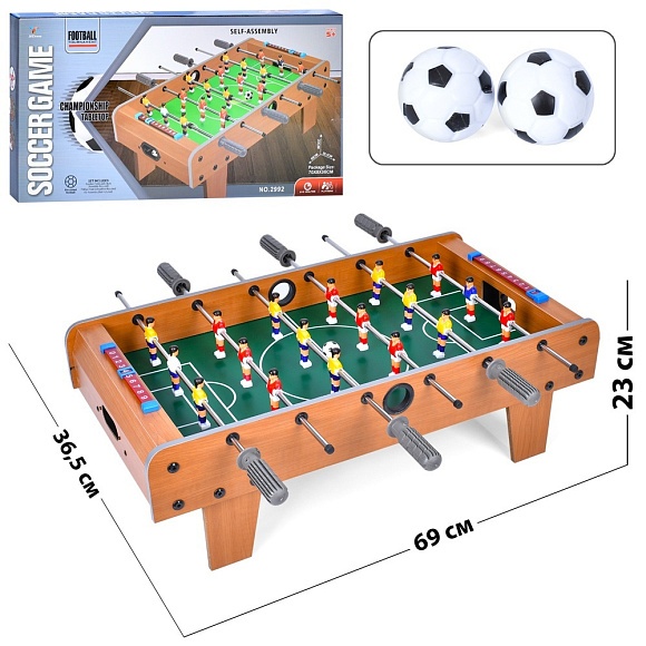 Опис Футбол 2992 дерев'яний, на штангах, на ніжках, 36,5-69-23 см., шкала ведення раху,кор., 70-36-8 см.
