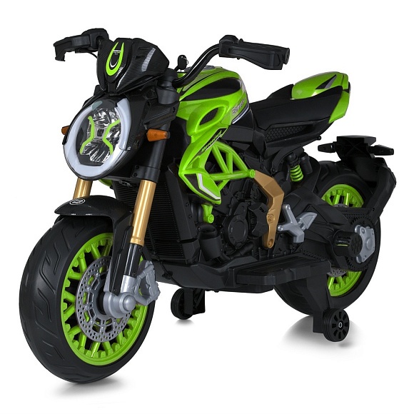 Опис Мотоцикл m 5827el-5 1*12v12ah, 2*45w, mp3, tf, usb, bluetooth, eva, шкіра, муз., світло, зелений