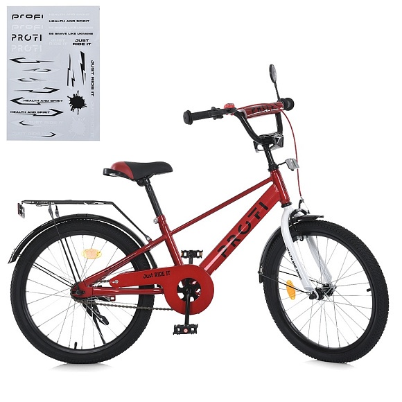 Опис Велосипед дитячий PROF1 20д. MB 20021-1 BRAVE, SKD75, дзвінок,ліхтар,багажник,підніжка,червоно-білий