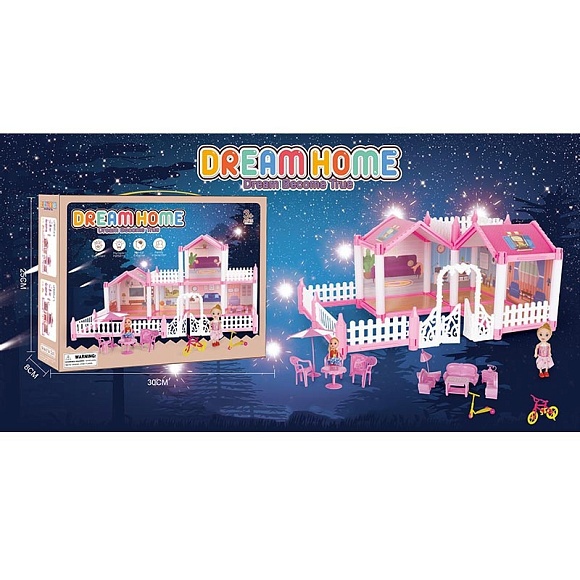 Опис Будиночок sh99-3 меблі, лялька 2 шт., 95 дет, світло, бат.(табл), кор., 30-25-8 см.