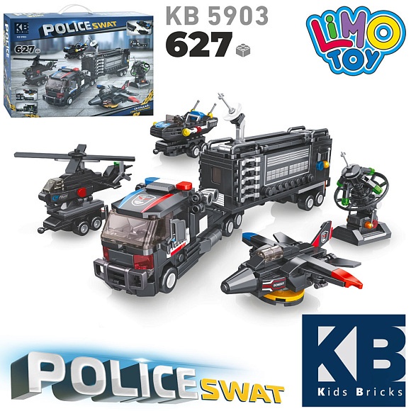 Опис Конструктор kb 5903 поліцейська техніка, 5в1, 627 дет., кор., 45-33-7 см.