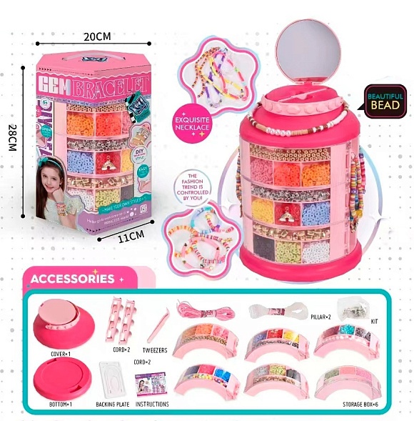 Опис Бісер KSY935 скринька (кришка-дзеркало, 3 яруси),намистини,підвіски,нитки,пінцет,застібки(мет.),кор.