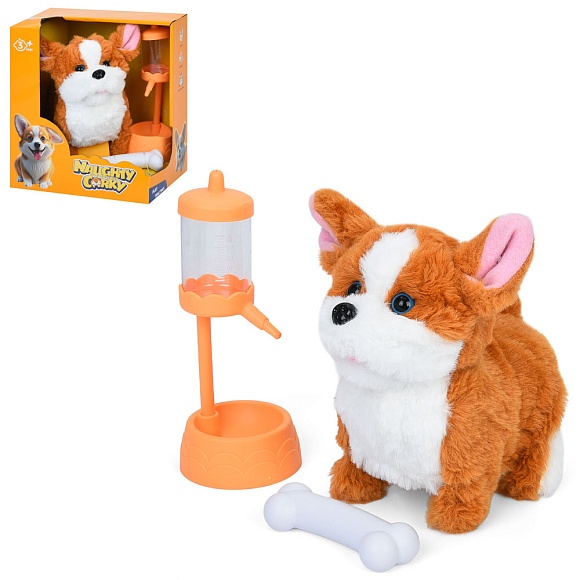 Опис Собака 933-211E ходить, рухлива голова, аксесуари, муз., бат., кор., 19-22-15 см.