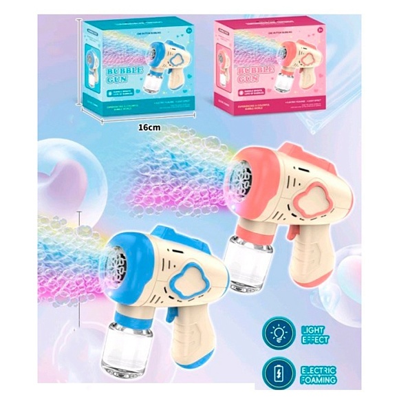 Мильні бульбашки152 пістолет, 15,5см,світло2 кольори, на бат-ці, в кор-ці,16-15-7см