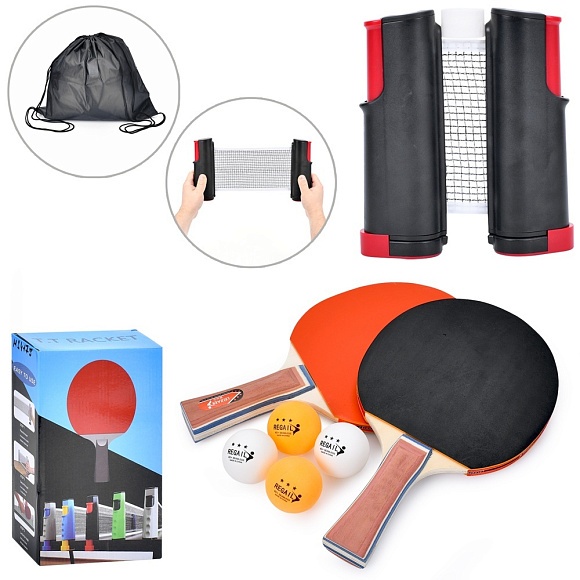 Опис Ракетка ms 4175 наб.для настіл.тенісу,2ракетки,сітка з фіксатором для столу,4 abs м'ячі,кор.,16-26-9
