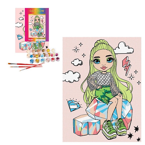 Опис Картина за номерами для дітей "rainbow high jade hunter" 30х40см