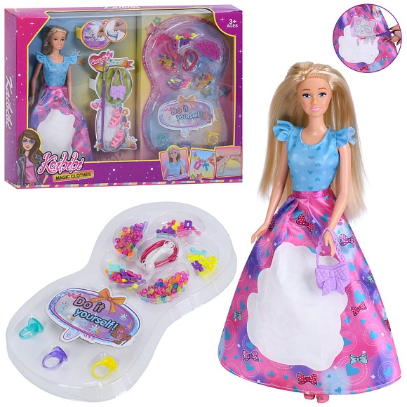 Лялька WG295 27см,плаття-розмальовка(малювання водою),пензлик,аксесуари,намистини,в кор.,42-32-5,5см