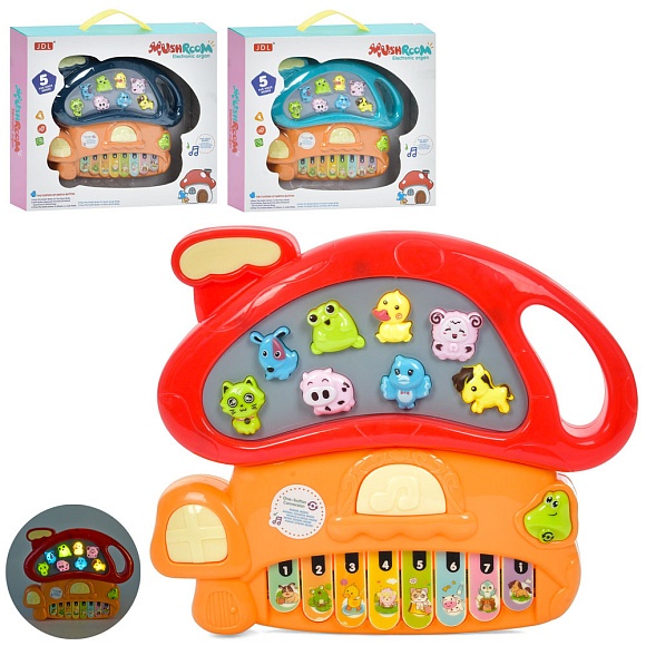 Опис Піаніно 8818B звуки тварин, 3 кольори, муз., бат., кор., 34-29-5,5 см.