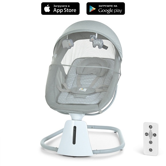 Опис Заколисуючий центр-шезлонг 8016 пульт, APP, USB, таймер, москіт. сітка, іграшки, муз., світло-сір.