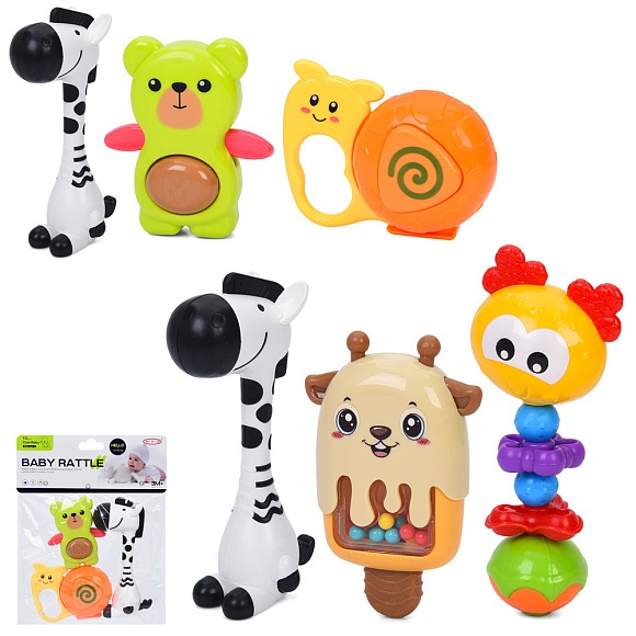 Опис Брязкальце 8436-8436-6набір 3шт(тварини)від11см.до15см,текст.деті, рухл.у пак.19-23-4см