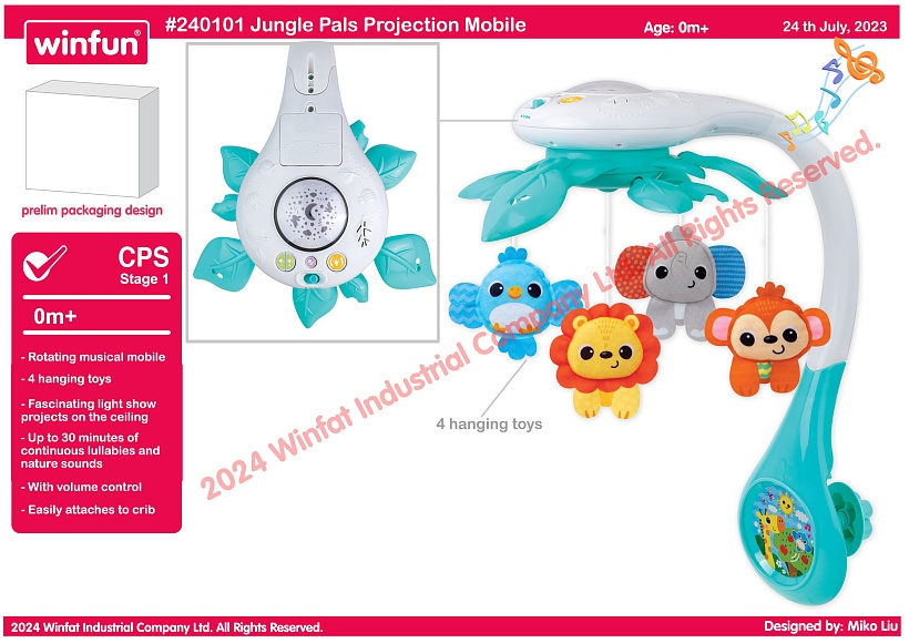 Опис Карусель на ліжечко 240101-nl підвіски 4 шт. (тварини), нічник, муз., світло, бат.,кор.,39,5-28-10см