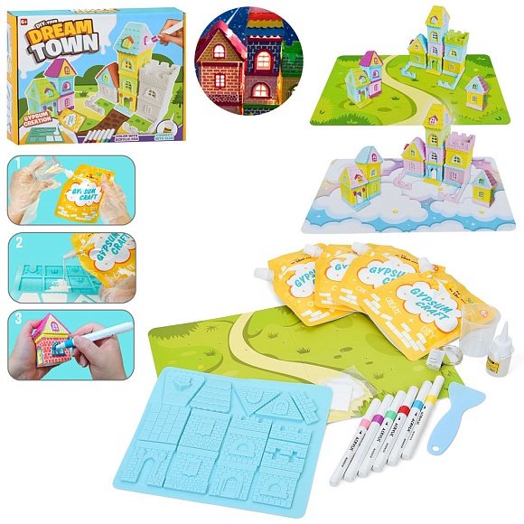 Опис Набір для творчості i001 Місто мрій,побудуй будинок,світло,гипс,формочки,маркери 6шт., інструм.,бат.