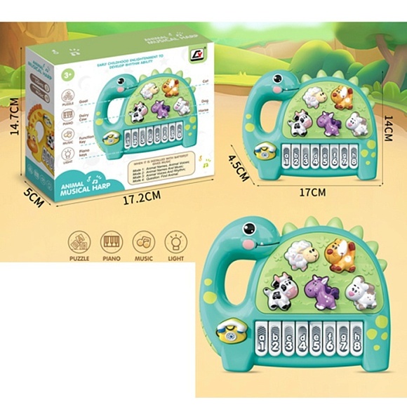 Опис Піаніно CY-8022B динозавр, звуки тварин, 4 режими, муз. (англ.), світло, бат., кор., 17,5-14,5-5 см.