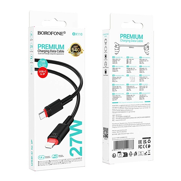 Опис Кабель usb borofone bx110 pd27w type-c to lightning (Чорний)