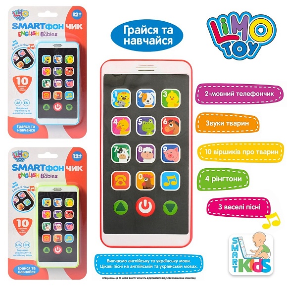 Опис Телефон m 3487 навчальний, назви тварин, вірші, муз., бат., лист, 13-23-2 см.