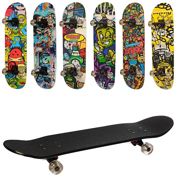 Опис Скейт MS 0355-2 79-20 см. (нажд.), алюм. підвіска, колеса ПУ, підшип. ABEC-7, 6 видів, розібр.