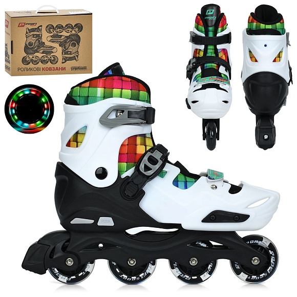 Опис Ролики a4158-l-w (39-42) розсувні, бакля,пласт.рама,колеса 70мм,світло,зібрані,білий,кор.,43-35-13см