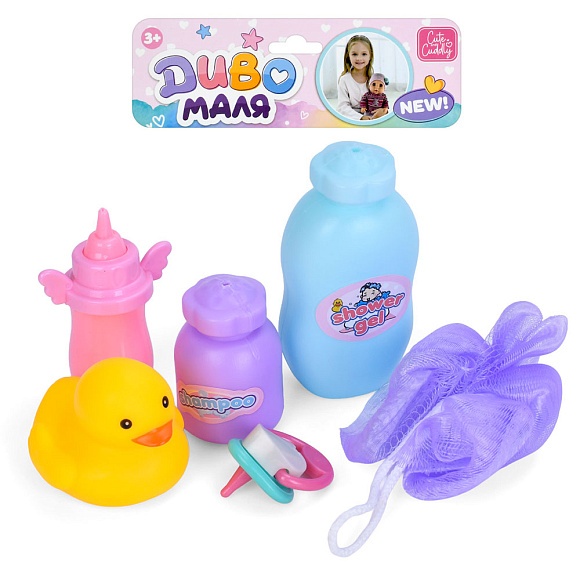 Опис Аксесуари для ляльки YL205J-DM-UA соска, пляшка, флакони, мочалка, каченя, у пакеті, 20-18-4см