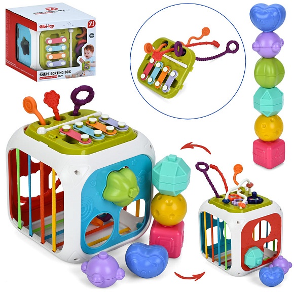 Гра 688-74 куб,7в1,розвиваюч.,грані-резинки,ксилофон,рух.дет.,сортер,прорізув.,фігурки,кор.,15-15-15