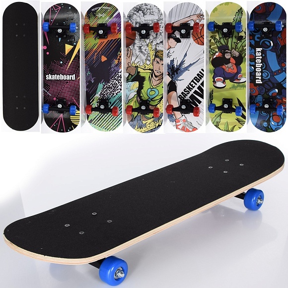 Опис Скейт ms 0354-4 (наждак), пласт.підвіска, кол.ПВХ, 7 шарів, 6 видів, 608z, розібр., кул., 70,5-20 см