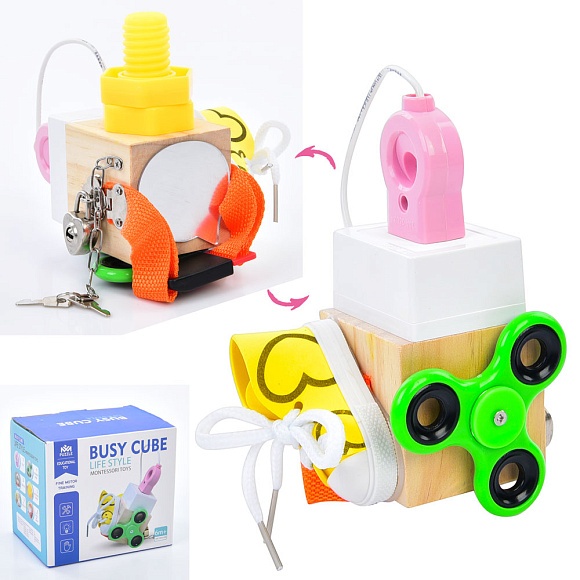 Бiзiкуб MD 0843 6в1, шнурівка,спінер,замок+ключ,вилка+розетка,застібка,болт,дзерк.,кор.,15-13,5-11см