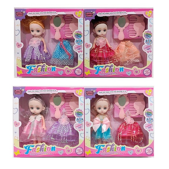 Опис Лялька 66060-27-28 гребінець, дзеркало, спідниця, 4 види, кор., 19-19-4,5 см.