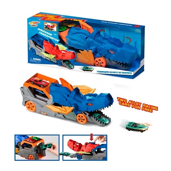 Опис Трейлер LA-389Bкорпус диноз34,5см,трек с запуском,машин7см2шт(метал) в кор-ці, 34,5-14,5-8,5см