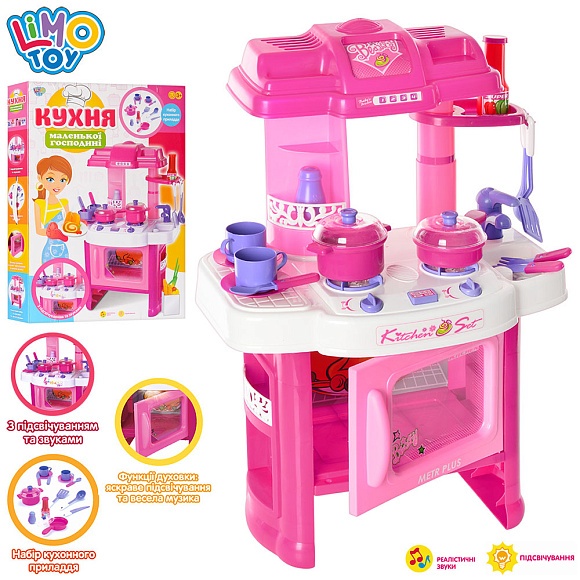 Опис Кухня 008-26 плита, посуд, духовка, мийка, муз., світло, бат., кор., 60-43,5-9 см.