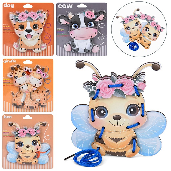 Опис Дерев'яна іграшка Пазли MD 0769 шнурівка, тварина, мікс видів, у слюді, 15-17-1,5см